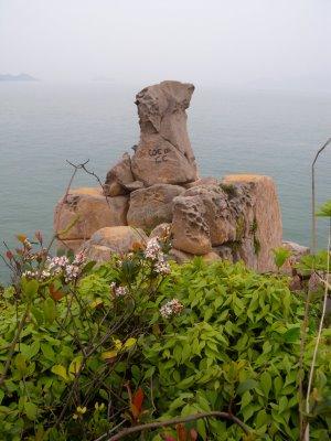 entre autres à la grotte d'un pirate du début du 19ème Cheung Po Tsai. On peut descendre, en fait ce n'est pas vraiment une grotte mais plutôt un boyau (on ne rampe pas on marche penchés). Il y a la queue pour y entrer et mieux vaut avoir une torche avec soi!Cheung Chau est très rocailleuse, ce qui est une peu surprenant je dois dire. Pour certains cela rappelle des endroit sur la côté méditéranéenne, pour d'autres des ballades sur l'île de Ré. on voyage pour pas cher!