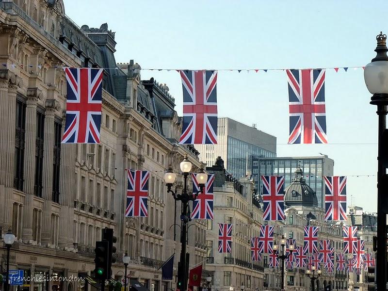 Une drôle de maladie s'est abattue sur la ville de Londres... Elle a été recouverte de drapeaux britanniques!! Accessoirement, les magasins ont été envahis de produits dérivés à l'effigie de Kate et William.