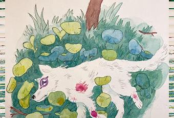 Je me suis inspirée de mon chien bien sûr, qui vieillit tranquillement à quelques centimètres de mes pieds.