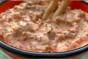 Servez votre ktipiti bien frais avec des tranches de pain grillé ou des crudités pour tremper. Bon appétit! 😊
