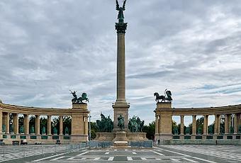 Le Monument commémoratif du Millénaire (en hongrois : Millenniumi emlékmű ou Ezredévi emlékmű) termine la perspective formée par l'avenue Andrássy qui s'achève sur la place des Héros. La construction du monument, de 1896 à 1922, s'inscrit dans une série de grands travaux célébrant les mille ans depuis l'arrivée en 896 des Magyars dans le bassin du moyen-Danube, que les historiens et géographes hongrois appellent « plaine pannonienne». Pendant la période communiste, certaines statues rappelant la monarchie furent enlevées, dont celles de François-Joseph et de Marie-Thérèse.