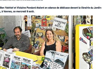 Un article dans le journal télégramme annonçant la séance de dédicace devant la librairie du Jardin des Bulles, à Vannes, le mercredi 9 août.