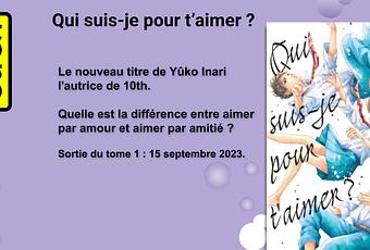 Qui suis-je pour t’aimer ? est un manga en trois tomes de Yûko Inari paru dans le magazine Dessert (shōjo). Ce dernier regorge d’excellents titres comme A sign of affection, Irrésistible ou encore Mon coloc’ d’enfer. Ce n’est pas une inconnu puisqu’elle est l’autrice de 10th – A couper le souffle dont j’avais parlé sur le blog lors de sa sortie.