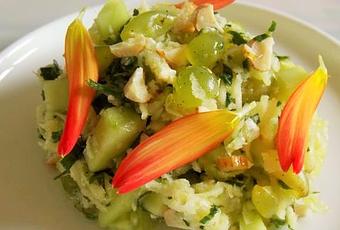 Aujourd'hui, je vous propose une Salade de chou-rave aux raisins et aux noisettes fraîches (Vegan) :