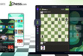 Désormais, les passionnés d'échecs peuvent accéder à une multitude de contenus liés aux échecs, directement depuis leur navigateur Opera. Une icône Chess.com apparaît au niveau de la barre latérale de cette version sur le thème des échecs, qui permet de résoudre des énigmes, de jouer contre des amateurs du monde entier, ou tout simplement de suivre l'actualité en surfant sur le Web.