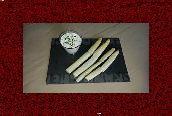 Disposer les asperges sur une assiette avec sa sauce à la crème liquide