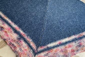 Pour la suite, et autant qu'on le veut ou peut, tricoter toujours 2 mailles endroit puis un jeté à chaque lisière, et 1 jeté de chaque côté de la maille endroit centrale. On obtient 4 augmentations tous les 2 rangs.