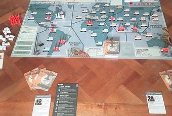 Pandemic Legacy : Saison 0 est un jeu coopératif, en campagne, legacy c’est-à-dire qu’il évoluera au fur et à mesure de vos parties aussi bien dans le livret de règles car vous y ajouterez des nouveaux points de règles, que sur le plateau, améliorez votre personnage, etc. Collection, gestion, et stratégie. Le jeu se déroule en pleine guerre froide, façon thriller où le monde est divisé en 3 catégories : les Alliés, les Neutres et les Soviétiques. Vous devez découvrir les secrets du projet MEDUSA mené par un groupe de recherches soviet et retrouver l’agent de la CIA Charles Sabik. CIA dont vous faites partie depuis peu : espion et scientifique. Ici les virus (Pandemic jeu de base) sont remplacés par les Agents. 12 mois pour 12 missions + le prologue, où vous voyagerez à travers le monde sous l’une de vos 3 fausses identités. Commencez avec le prologue pour faire connaissance avec le jeu, cette partie ne modifiera pas le jeu. La communication à un rôle primordial pour remporter la partie où il vous faudra remplir un ensemble d’objectifs. Si vous loupez une mission il sera toujours possible de la rejouer une fois de plus mais une fois de plus seulement.