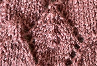 L'essentiel de l'ouvrage est réalisé en point de blé, et le motif de losanges ajouré est relativement simple. Il court sur 19 mailles et 22 rangs.