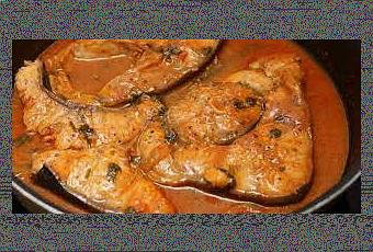 Incorporez les dés de tomates, le bouquet garni, et remettez les morceaux de requin dans la poêle.