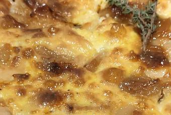 ▪️ Monter la tarte. Emietter les deux fromages sur le fond de tarte, puis répartir uniformément les gousses d'ail sur le dessus, avec le sirop. Verser ensuite le mélange oeufs-crème et bien répartir en veillant à ce que l'ail et le fromage affleurent.