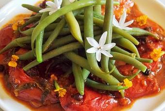 J'ai terminé par quelques fleurs d'ail de l'Himalaya sur les haricots verts cuits à l'anglaise.