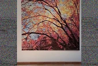 « L’Arboretum » de Bernard Pourchet vous accueille au rez-de chaussée de la Galerie. De grands formats. Certains sur bâche… Assez spectaculaires. Cette variation sur le thème de l’arbre vous séduit forcément. Surtout si vous aimez le figuratif…Belles couleurs, belles lignes. Voyez plutôt (photo ci-dessous):