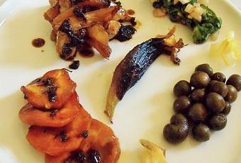 Aujourd'hui, je vous propose des Légumes marinés et confits, accompagnés de fruits de l'igname de Chine (Vegan) :