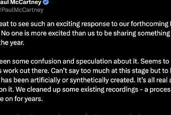 McCartney a alors tweeté ceci pour dissiper la confusion, ce qui … n’a pas clarifié grand-chose au-delà de “C’est un vrai disque et nous jouons tous dessus ».