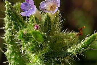 Lycopsis arvensis (Buglosse des champs) est une espèce thermophile présente en Lorraine, assez commune dans les cultures et jardins sur sols acides : plante couverte de poils raides, à bords des feuilles ondulés et tube de la corolle blanc, long et coudé.
