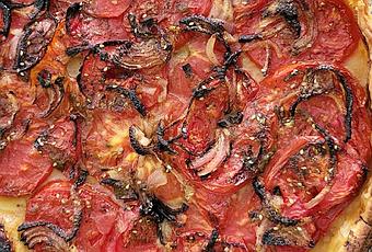 Il y a quelques années un ami m'a donné la recette de la tarte aux tomates que je ne connaissais pas du tout. Depuis je me suis rendu compte que cette tarte trône tres régulièrement sur la table des familles françaises, et ensuite sur la mienne aussi. Traditionnellement on badigeonne le fond de la tarte avec de la moutarde, mais Simome Zanoni propose dans cette recette une variante. Le chef propose de faire la pâte soi-même vraiment facile à réaliser