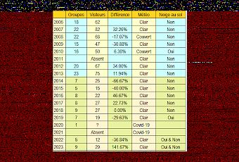 Ces dernières années et principalement à cause de la pandémie, notre fréquentation de petits visiteurs le soir d’Halloween avait été lamentable, voire en chute libre et surtout après avoir emménagé dans notre nouvelle maison, était loin d’attendre les niveaux atteints jusqu'en 2013 (voir tableau ).