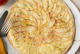 Voici la recette de flammekueche sucrée aux pommes, une savoureuse tarte flambée sucrée à base de pommes, facile et simple à réaliser pour un goûter léger.