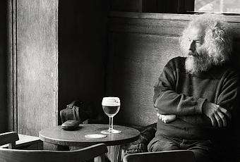 Le café Interview est l’un des endroits les plus emblématiques de la capitale. Il me semble qu’il n’a pas changé depuis des décennies, il a gardé le même cadre, la même configuration, la même simplicité chaleureuse. La même photogénie. Qui résulte de la lumière naturelle, émanant de ces deux grandes ouvertures vitrées et qui vient rebondir sur les boiseries tout en sensualité de l’intérieur. On peut y faire à tout moment des belles photos. Ce n’est pas compliqué.C’est un endroit par lequel sont passées des générations d’artistes, d’intellectuels, de professeurs, de penseurs, d’amateurs de bière et de joutes verbales, de jeunes, de vieux, d’innocents et de coupables.