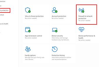 De là, vous pouvez accéder au pare-feu en sélectionnant « Pare-feu et protection réseau » dans la liste de gauche ou en cliquant sur l’icône correspondante dans le menu principal. Une fois là-bas, vous verrez trois types de réseaux surveillés par le logiciel : de domaine, privé et public.