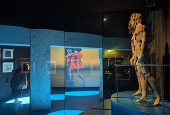 Photo prise au MAMCS en visitant l’exposition : Aux temps du sida. Œuvres, récits et entrelacs. J’avoue me perdre un peu dans ce reflet. Le personnage a droite se reflète bien le long de ce grand miroir où l’on aperçoit le reflet d’un écran avec un couple qui danse. À gauche, une visiteuse qui admire des pochettes de disques dont le fameux Tainted love de Soft Cell.
