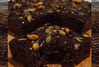 Ajoutez les brisures de chocolat, les noix dans le bol et mélangez bien la préparation avec une spatule. Versez le tout dans le moule et cuire au centre du four environ 30-35 minutes. Vérifier la cuisson après 30 minutes en insérant un cure-dent au centre et s'il en ressort propre, retirer le moule du four.