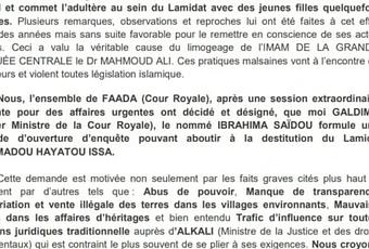 Ngaoundéré, le 17 novembre 2023 – De graves accusations viennent d’être portées à l’encontre de l’autorité traditionnelle de Ngaoundéré. Dans un courrier adressé au Premier ministre, des notables fustigent les agissements du lamido Mohamadou Hayatou Issa et réclament sa destitution.