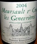 Pour changer un peu des liquoreux, voici un commentaire d’un Meursault 2004, millésime qui nous offre de belles réussites sur cette couleur en Bourgogne.