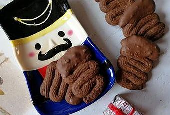 6) Faire fondre le glacage selon les indications de l'emballage, tremper l'extrémité des biscuits dans le chocolat fondu. Laisser durcir avant de déguster