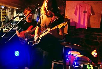 Très bon plan, car le matos du groupe, trois jeux de pédales à effets, deux claviers/synthés, deux guitares + un truc qui ressemblait à une guitare/mandoline, une basse, une batterie légèrement tronquée car au lieu des différentes caisses ou toms, le frappeur s'est trouvé des congas et un jeu de timbales, quelques autres engins percussifs et un mélodica, des 13 mètres carrés initiaux, il reste 5 mètres carrés, ainsi, personne ne mourra de froid ce soir!
