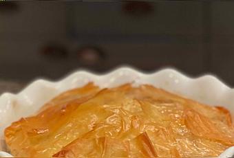 11. Replier la première feuille filo en veillant à badigeonner de beurre le dessus des feuilles rabattues au fur et à mesure.