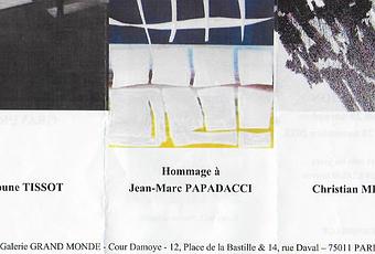 Le lieu est presque caché dans une Cour près de la Place de la Bastille, deux accès, un passage pavé. C'est la deuxième fois que je viens dans cet endroit. La première fois que j'ai vu ces trois artistes, c'était Cité de la Roquette, toujours un lieu dans la ville, un peu à l'écart de grandes voies, au calme, sans en être pourtant éloigné. Cette année est marquée par l'absence de Jean-Marc Papadacci qui a préparé cette exposition il y a déjà plusieurs mois mais qui s'est noyé cet été, laissant des images à la fois rigoureuses dans la forme et colorées. Il est ainsi présent avec ses ami.e.s car, peut-être plus qu'un hommage, Doune Tissot et Christian Minas intègrent Jean-Marc dans cette exposition avec le sens du partage qui prévalait entre eux. S'ils échangent sur leurs travaux, on ne trouve pas d'influence réciproque. L'usage de la couleur, par exemple, est très différent chez l'une ou l'autre. C'est dans leurs relations à celles et ceux qui viennent passer du temps dans ce lieu qui les accueille qu'on trouve connivence et sens de l'hospitalité. L'exposition, bien qu'elle ne dure pas très longtemps, est toujours très importante parce qu'elle leur donne les regards sur leurs oeuvres qui donnent un sens à leur travail souvent solitaire, parfois très technique, et que ces regards nourrissent leurs réalisations à venir. L'exposition est nécessaire à l'échange et à l'art.