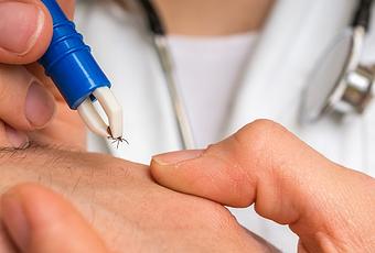 La maladie de Lyme entraîne d’abord des symptômes similaires à ceux d’un syndrome grippal accompagné dans 30 à 60 % des cas, d’une plaque rouge sur la peau qui peut passer inaperçue ou s’tendre sous forme d’érythème. En l’absence de traitement antibiotique, la maladie de Lyme peut évoluer et entraîner des symptômes plus sévères dont des douleurs notamment articulaires et musculaires, une grande fatigue et jusqu’à des symptômes de type SEP et la paralysie. La maladie touche prioritairement les personnes évoluant dans la nature ou à proximité d’animaux, et dans les régions où les tiques infectées sont abondantes