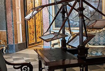 Un des deux pupitres est exposé dans les salles du Palais royal de Naples.