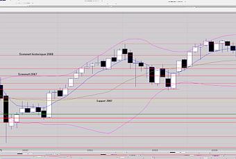 Pour le moyen terme, le graphe mensuel à fin octobre a fait basculer le CAC 40 en tendance baissière.Les 3 bougies noires, apparues à partir du mois d'août, pouvaient faire penser à la formation d'une structure en trois corbeaux noirs que je n'ai volontairement pas évoquée car n'apparaissant pas après une avancée haussière mature en raison d'un blocage sur le niveau de résistance imposée par les 7385 points depuis avril dernier.L'étoile du matin formée début novembre sur le graphe de court terme (hebdomadaire) a validé une reprise haussière faisant disparaître le doute d'un départ baissier consécutivement à la rupture du support des 6945 points.Il en ressort fin novembre la formation d'un marubozu blanc de clôture de taille respectable qui ne permet toutefois pas de refaire basculer le CAC 40 en tendance haussière.Cela dit, ce marubozu de clôture ainsi que la dynamique de court terme établie vont probablement favoriser la poursuite de ce mouvement haussier.On notera que le DAX vient de passer en tendance haussière fin novembre, ce qui apporte un argument essentiel à un prochain retournement de tendance de moyen terme pour notre indice principal parisien.Un mot sur l'or qui poursuit durablement sa hausse avec un nouveau sommet historique hier 1er décembre, mouvement haussier qui ne semble pas près de s'arrêter.La baisse des 10 et 30 year-treasory bonds ainsi que celle de l'USD par rapport aux principales devises allant dans ce sens.