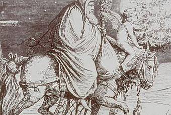 Knecht Ruprecht est décrit comme un moine vêtu d'un long manteau, avec une perruque et une longue barbe sale qui lui descend jusqu'aux pieds ; il porte un fouet avec lequel il punit ou menace les méchants enfants méchants.