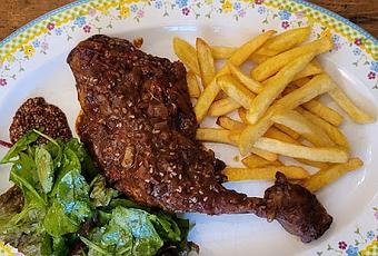 Dresser le poulet sur le plat de service et verser la sauce dessus