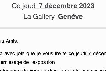 La Gallery – Genève –  le 7 Décembre 2023. La Gallery – Genève –  le 7 Décembre 2023. La Gallery – Genève –  le 7 Décembre 2023. Explore posts in the same categories: galeries