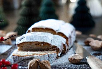 Je vous rappelle qu'un stollen est un gâteau d'origine allemande préparé pendant la période de Noël. C'est une pâte levée mais comme elle est dense, elle ne ressemble pas à une brioche mais plutôt à un cake.