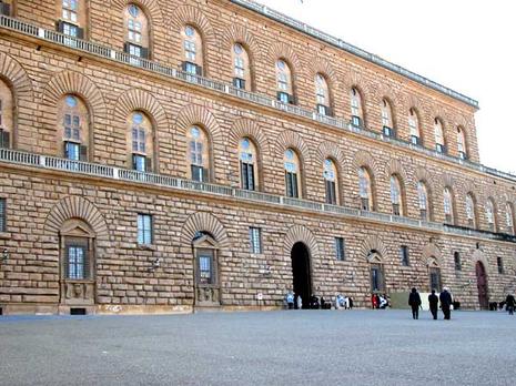Très belle structure construite par un marchand pour sa famille, rachetée par les Medicis qui l’ont agrandi pour surtout symboliser le pouvoir de Cosme. Comme dit précédemment, le palais est relié directement à la galerie des Offices par un couloir qui traverse l’Arno et qui permettait à Cosme de se déplacer rapidement mais surtout en toute sécurité entre sa propriété et le siège du gouvernement.