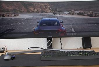 La fidélité des couleurs de l’écran est toujours perceptible lors du test. Les couleurs sont très différenciées et reproduites fidèlement aux détails. Le contraste est d’un niveau très élevé avec 3000:1, ce qui est positivement perceptible lors de notre test. Dans l’ensemble, la prise en charge HDR rend la présentation du contenu extrêmement réaliste. Outre les facteurs évoqués, la courbure, qui donne l’impression d’être au milieu de l’action, assure également cela. Malheureusement, la résolution relativement faible de 3 840 x 1 080 pixels pour la taille du moniteur est ici perceptible. Même si le contenu est présenté de manière très différenciée et vivante, il n’est pas extrêmement pointu. Surtout si l’on est habitué à des moniteurs à plus haute résolution, le changement est perceptible. Cependant, il faut également considérer que les cartes graphiques actuelles avec une résolution plus élevée auraient des problèmes.