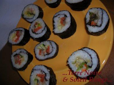 Voilà pour ceux déjà "testés"... J'ai encore pas mal d'idées derrière la tête, qui devront attendre que j'ai un peu plus de temps pour se réaliser... Ceci étant, je crois que même si Monsieur Sablier prend son temps, je vais le presser... Parce que moi, les Sushis... je suis vraiment fan.