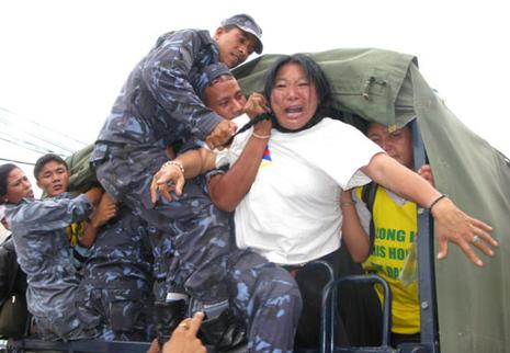 Ces photos montrent notamment l`arrestation de 248 manifestants tibetains qui protestaient, ce 19 aout, devant les bureaux des visas de l`Ambassade de Chine. Au passage signalons que cette Ambassade ressemble davantage a un Bunker du 3eme Reich(clin d`oeil a d`autres jeux) qu`a une Ambassade digne ce nom !