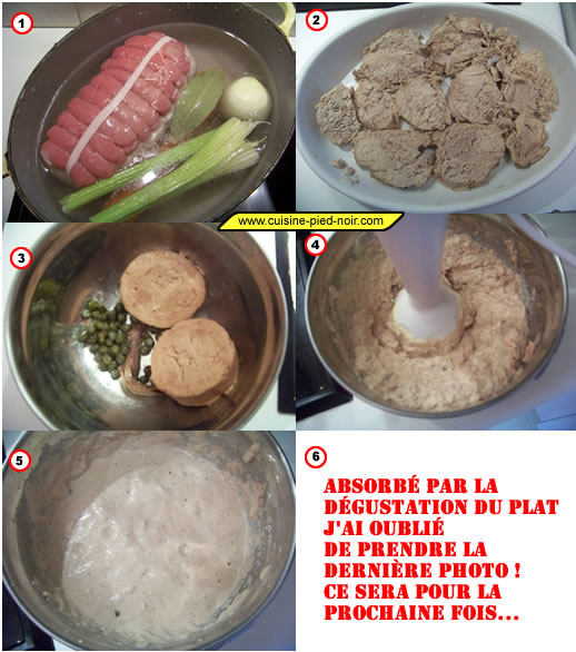 Pour la sauce : 200g de thon à l'huile en boîte, 2 filets d'anchois, 1 C.A.S. de câpres au sel (ou à défaut au vinaigre mais c'est moins bon !), 10cl de bonne mayonnaise