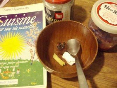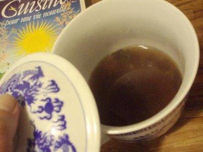 Alors de quoi revigorer tout cela: une recette de thérapie macrobiotique pour yanguiser après excès de légumes, sucreries, alcool ou contre un rhume. Je reviendrais plus tard sur les préceptes de la macrobiotique et le yang et yin associé. J'aime aussi parce que je bois ce genre de remède dans les grandes tasses chinoises pour les soupes que m'a ramenée ma mère de son séjour en Chine.