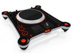 Son avantage ? Tous les contrôles se font directement sur la platine et plus avec votre bonne vieille souris (ainsi finit les remarque du type “bon il fout quoi le DJ là, il est sur Facebook ?!”). Ceci à l’aide des 5 jogs présents : le premier (7,5 pouces) est clairement visible comme le nez au milieu de la figure, et je vous laisse deviner où sont les 5 autres… Sur les 4 pieds de la platine ! Sans oublier les pavés tactils et le controleur de distance et de mouvements…
