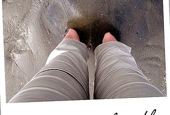 Avec une eau tempérée, comme si elle sortait du réfrigérateur et un vent idéal pour faire du cerf-volant ou de la planche ŕ voile, il fallait ętre courageux pour s'adonner au bronzage ou oser mettre plus qu'un pied dans l'eau. Cette fois-ci, je ne me suis pas amusée ŕ "m'enliser" dans le sable mouillé ŕ la marée descendante.
