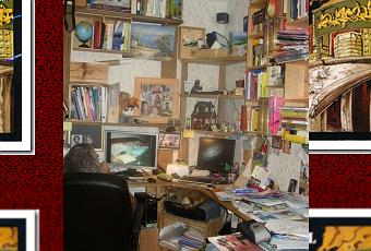 voici un aperçu de notre bureau commun, puisque nous vivons à peu près toujours là, mon bel homme et moi-même, et encore, quand les enfants n'y viennent pas squatter, leur ordi personnel ayant planté définitivement à force de manoeuvres douteuses ("Non, on ne jette pas la souris ! Non, on ne met pas de coups de pieds dans la tour centrale ! Non, on ne clique pas 50 fois sur une fenêtre !")