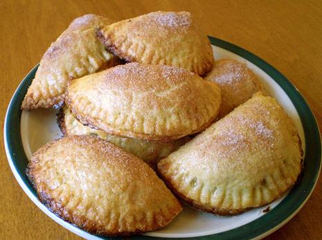 Déposer une bonne cuillerée à table de garniture au milieu de chaque rond. Replier le rond en demi-lune et utiliser une fourchette pour sceller les bords décorativement. Badigeonner le dessus de chaque chausson avec l’oeuf battu et saupoudrer du sucre à la cannelle pour terminer. Enfourner et cuire environ 20 minutes ou jusqu’à doré. Laisser refroidir 10 minutes avant de déguster.